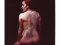 J’ai croisé Virginie à de multiples occasions lorsqu’elle officiait au Totem, elle se laisse parfois embarquer dans des projets photos plus ou moins barrés. Je ne sais plus à quelle occasion elle m’a appris qu’elle avait un tatouage dans le dos dont elle n’avait pas de photo. Je lui ai parlé de mon projet de trichromie et nous avons donc planifier une rencontre.